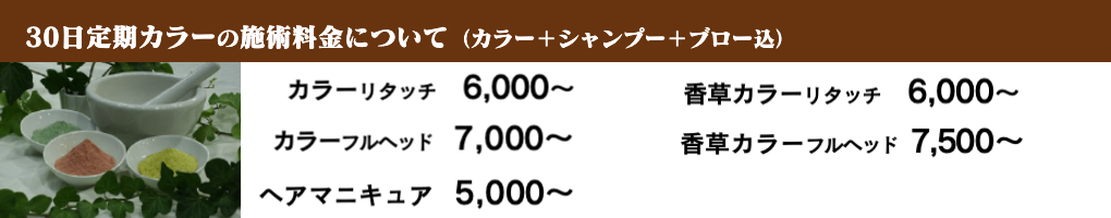 毎月30日以内にご来店されるお客様が対象です。毎回「カット」の必要がない。前髪だけのカットで良い。カラーとトリートメントでいいなどそんな声にお応えします