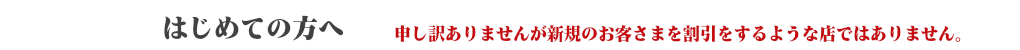 *申し訳ありませんが新規のお客さまを割引をするような店ではありません。