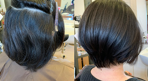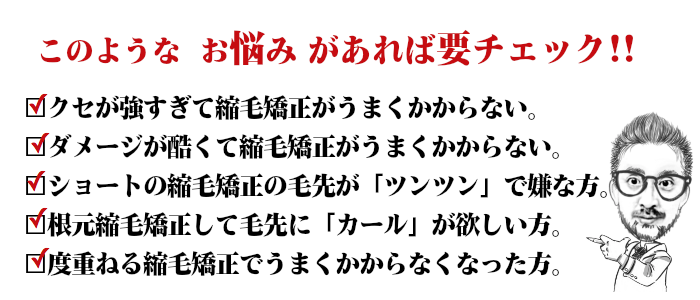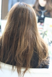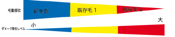 新生毛はいわば「健康くせ 毛」既存毛は「カラー履歴」「縮毛矯正履歴」「パーマ履歴」がある。当然、既存部と新生部は「薬」の反応が異なります。「塗り分け法」「時間差法」「減力方」で「適正還元」「適正軟化」でダメージを最小限に抑える。
