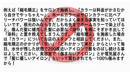 縮毛矯正後、ご自宅での 「泡カラー」は大変危険です。