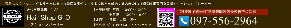 はじめまして、ヘアショップG-Oオーナーの植木 俊文です。35年前の創業以来、ご利用いただいた全てのお客様に「今までで一番良かった」とそんな思いになって欲しいという信念のもと日々業務に励んでいます。得意とする「縮毛矯正」に関して、 延べ24,000人以上の実績&経験値、をもって今できる最高の技術を全力で投入致します。お客様が施術後、ニコニコして、髪を触っている時の達成感は最高です。お客様の笑顔を励みにもっと技術を鍛錬し、薬剤を勉強して最新の縮毛矯正術を進化させていく所存です。