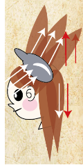 ●キューティクルを整えるために、ドライヤーの風向きは上から下が基本です。*ボリュームが欲しい場合は逆から風を当ててね