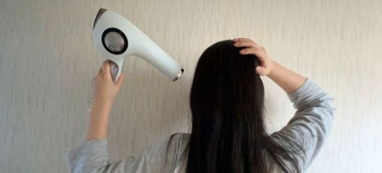 ●髪から20~30cm離して、ドライヤーを左右に振りながら熱を分散させます