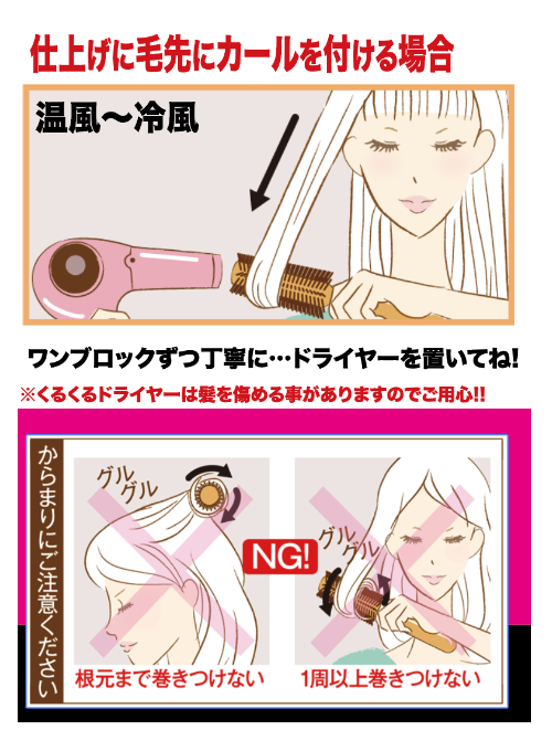 *先に毛先を乾かすと乾かしすぎになってカールが出ません