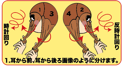 ●コツはゆるく巻くことです。ねじり過ぎはカールが出ません