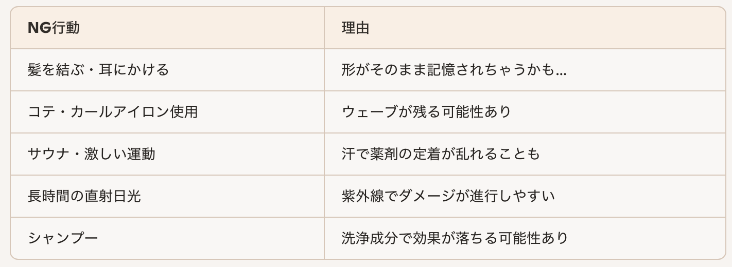 お風呂から出たタイミングで、デジタルパーマが出るように意識して乾かすと、朝熊デカールが残ります。朝はカールが出てない部分だけのスタイリングでうまくいきます。